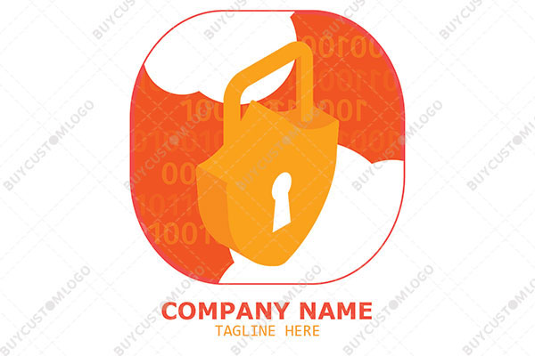 LOGO DESIGN DESCRIPTION It is a custom logo created using the emblem of a lock modified to resemble a shield that symbolizes security, incorporated in a squircle along with clouds and binary codes symbolizing digital online data storage. Multiple shades of orange are used in the design however it could be reproduced flat in any colours of your choice without the loss of quality. Suitable for related businesses.