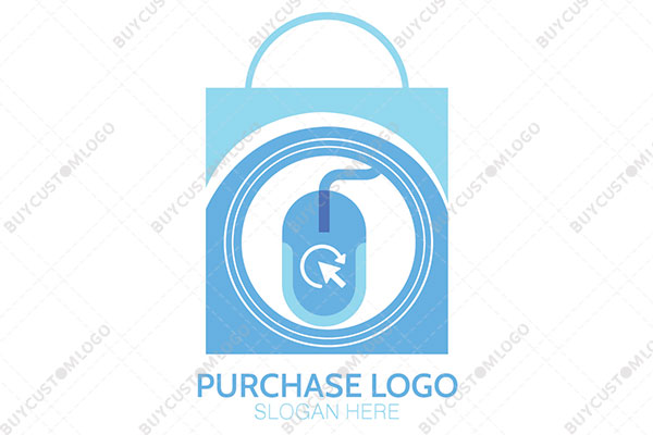 LOGO DESIGN DESCRIPTION It is a customized logo created using the emblem of a shopping bag which is incorporated with a mouse with wire, cursor and circular arrow. White and multiple shades of blue are used in the design however it could be reproduced flat in any colours of your choice without the loss of quality. Suitable for e-commerce and retail businesses.