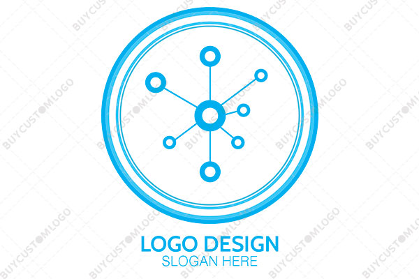 LOGO DESIGN DESCRIPTION It is a custom logo created using the emblem of network nodes formed with linework and circle, incorporated in circular lines forming a round seal, designed with multiple shades of blue. The design could be reproduced flat in any colours of your choice without the loss of quality. Suitable for businesses related to networking technology.