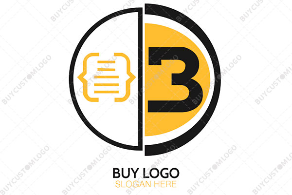 | Exclusive Logo 3148, abstract letter b or number 3 with codes in circle logo