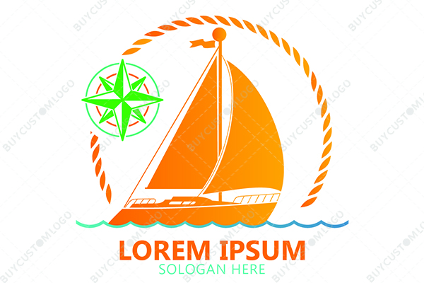 | Exclusive Logo 3236, A Sailing Ship with Horizon and Compass Logo