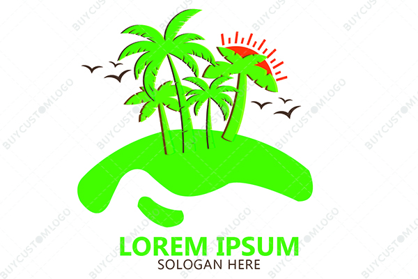 | Exclusive Logo 3240, An Island with Palm Trees and Sunset Logo
