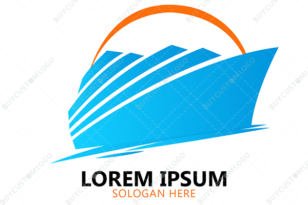 LOGO DESIGN DESCRIPTION The design shown above presents a cruise ship and behind it a shade of the setting horizon, these features of a logo are highly expected of travel companies offering cruise voyages to clients wanting a luxury tour of the ocean . The background color blue which resembles calmness and comfort are the vital essence that a luxury tour company needs to attract its potential customers.