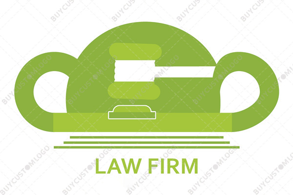 LOGO DESIGN DESCRIPTION Custom logo created using the emblem of a gavel encompassed in a design that is made to resemble a UFO with stairs to make it unique. Shades of only green colours are used to maintain simplicity. Suitable for all types of legal services.