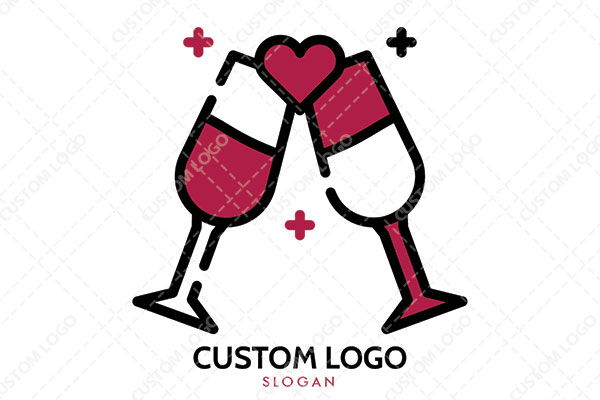 | Exclusive Logo 3304, Two Champagne Glasses with a Heart in Between Logo