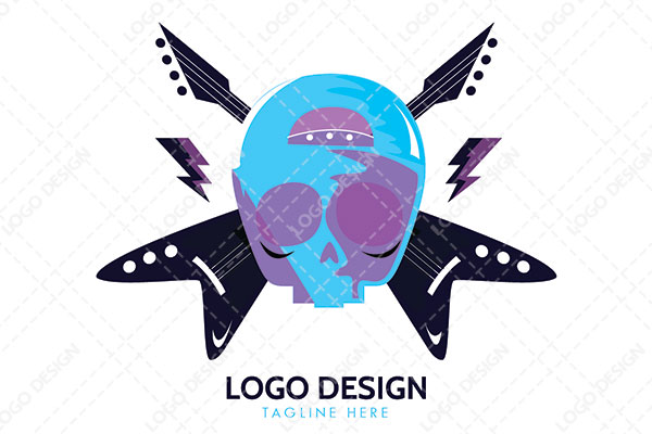 | Exclusive Logo 3308, Skull Placed in Between Two Guitars Logo