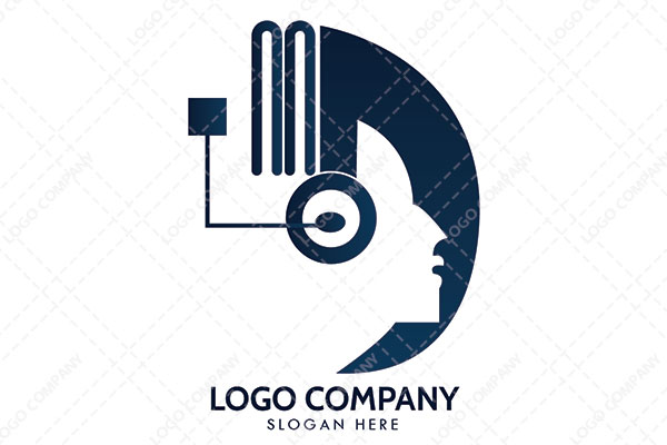 | Exclusive Logo 3401, Circle Abstract with a Individual Wearing a Headphone with Electrical Node Connected Logo