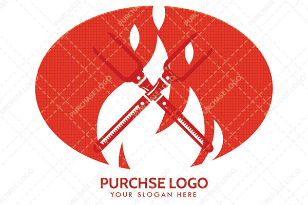 | Exclusive Logo 3532, Oval Abstract within it Two Barbecue Forks and Flame Logo