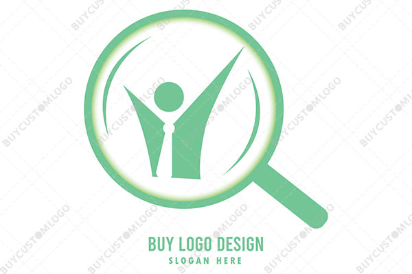 LOGO DESIGN DESCRIPTION This abstract design consists of a magnifying glass within it a happy individual with a tie. This aspect of the design the refers to organizations and enterprises that engage in providing human resource or jobs to their clients and customers. For such firms and business this design is ideal as it reflects upon the nature of the business, as well as, allow potential clients and customers to engage and interact with the business, according to their needs and preferences. Moreover, the background color of the design comprises of the color green and white, colors which symbolize well-being, trust, goodwill, and success, aspects which emphasizes upon the services that the business intends to provide to its potential clients and customers.