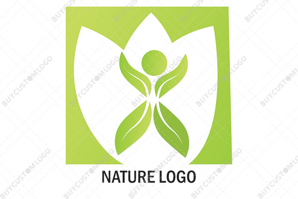 LOGO DESIGN DESCRIPTION Custom logo created using the emblem of an abstract person character modified to look like a butterfly representing freedom and flower that resembles a shield which stands for security. The design is encompassed in a quadrilateral to give it a holistic look. Shades of green colour are used to communicate the love of nature for your brand. Suitable for all types of businesses.