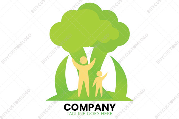 LOGO DESIGN DESCRIPTION Customized logo created using the emblem of a tree modified to look like a brocolli to make the design unique with father and son standing under it and enjoying its shade. The boundaries used symbolize security of health gained by living in a natural environment and eating green foods. Suitable for all types of businesses.