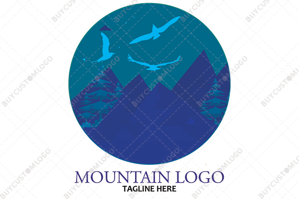 LOGO DESIGN DESCRIPTION Custom logo created using the emblems of mountains, sky, flying bird, clouds and trees. The colours used in the design gives it a look that seems to be of a dark night and is encompassed in a seal to make it holistic. It will ensure a bold impression for your brand among the target audience. Suitable for all types of businesses.