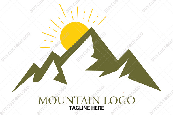sun rising behind a mountain logo