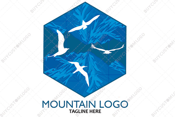 LOGO DESIGN DESCRIPTION Customized logo created using the emblems of frozen mountains along with its inverted version to create a reflection along with flying birds. The design is encompassed in a hexagon to give it a holistic look. The colours used in it will ensure that your target audience engages with your brand. Suitable for all types of businesses.