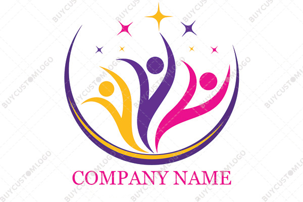 LOGO DESIGN DESCRIPTION Customized logo created using the characters of abstract persons dancing with four-point stars that represent the disco lights integrated with a circle sketch line that symbolizes the dance floor and give the design a holistic look. Vibrant colours are used to communicate youthful energy for your brand. Suitable for night clubs, discos, dancing bars as well as other businesses of this category.