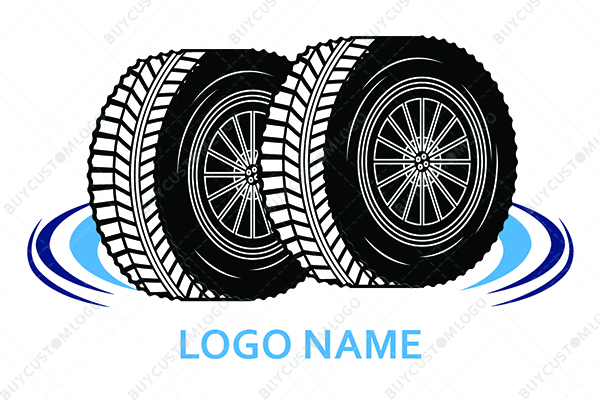 LOGO DESIGN DESCRIPTION Custom logo created using the emblems of thick black and white tires which will ensure a bold impression and the circular lines around it will help divert the focus of your target audience on the design. It will communicate strength and determination for your brand. Suitable for tire shops as well as automobile dealerships.