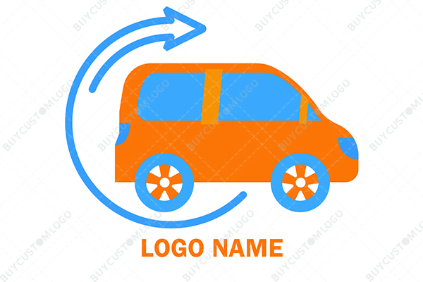 LOGO DESIGN DESCRIPTION Customized logo created using the emblem of orange van representing the vehicle integrated with a round arrow which symbolizes a dedicated route that makes it highly suitable for pick and drop services. The colours used in the design will attract more attention to your brand.