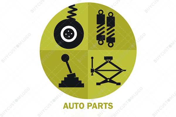 LOGO DESIGN DESCRIPTION Customized logo created using the emblem modified wheel, helical extension spring, gear and carjack encompassed in a seal. The colours used amplify all the elements of the design. Suitable for auto repair and accessories shops.