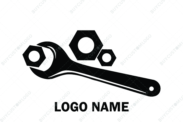 LOGO DESIGN DESCRIPTION Customized logo created using the emblems of a spanner and nuts. The design is made in black colour making sure it stays relevant for a long time. Suitable for car repair shops and hardware stores.