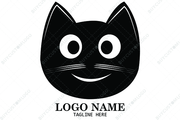 | Exclusive Logo 697, black happy kitten face cartoon logo