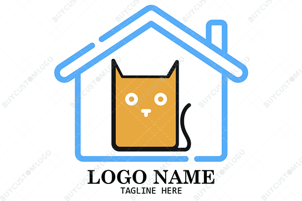 LOGO DESIGN DESCRIPTION The character of a cat with its tongue out is encompassed in a hut to create this custom logo. The character communicates naughtiness while the house represents security, comfort and protection. Suitable for animal shelters and vets.