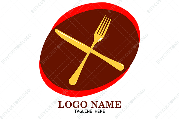 LOGO DESIGN DESCRIPTION The emblem of a fork and knife are used to create this custom logo. The golden colour is chosen for these elements to give it a premium look and encompassed in a dark seal to amplify the design. Suitable for restaurants, cafes, caterers as well as other businesses.