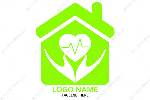 LOGO DESIGN DESCRIPTION A customized logo created using a heart with ECG lines to communicate life and good health placed on abstract hands to represent healthcare encompassed in a hut to symbolize a place where it is provided. Green is used in the design as a primary one to give it a natural look. Suitable for hospitals, clinics, pharmacies, drug stores as well as other businesses of this category.