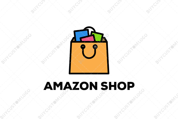 LOGO DESIGN DESCRIPTION This is a customized logo of a shopping bag with items inside it, the handle of which is modified in such a way that it looks like a smiling mascot. It is made using multiple colours which ensures that more eyeballs would be attracted towards your brand. Suitable for e-commerce stores as well as retailers.