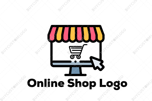 LOGO DESIGN DESCRIPTION Customized logo created combining the emblems of a computer screen, shopping cart and a storefront that looks like a mascot of a shocked mascot. Suitable for e-commerce businesses selling gift items.