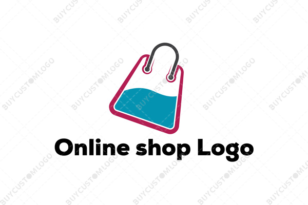 LOGO DESIGN DESCRIPTION Customized logo created using a shopping bag of pink colour integrated with blue waves. Suitable for e-commerce businesses with water-themed user interface and ones serving the female audience.