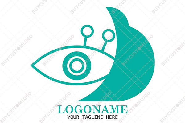 LOGO DESIGN DESCRIPTION Custom logo created using the emblem of an eye with ears resembling antennas representing communications technology integrated with a cloud symbolizing the wireless transfer of data. Suitable for companies providing online security and surveillance solutions.