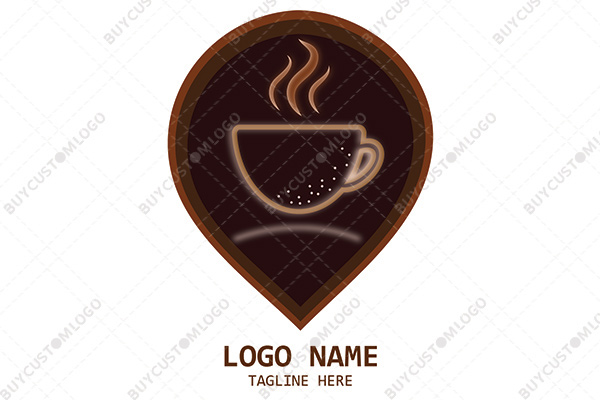 | Exclusive Logo 930, location pin with hot coffee in a cup logo