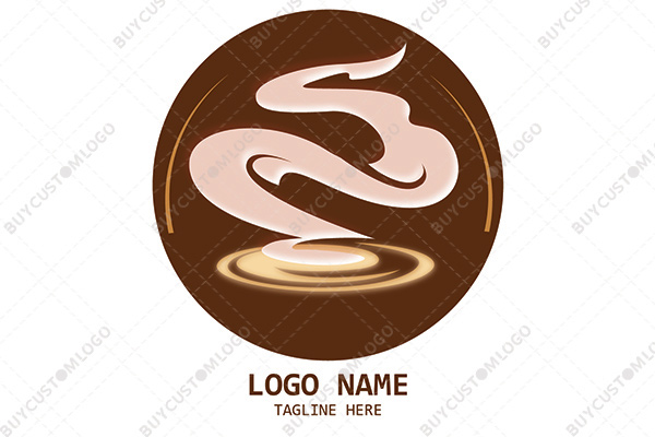 LOGO DESIGN DESCRIPTION Custom logo created by integrating thick fumes with a latte in a seal. The natural colours of this beverage are used in the design that gives it a rich look thus ensuring more attention for your brand. Suitable for cafes, restaurants and shops serving this to their customers.