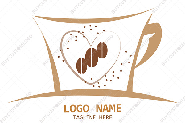LOGO DESIGN DESCRIPTION Custom logo created using the emblem of a cup modified to look like a wall symbolizing a place integrated with a heart representing love and coffee beans that stand for the meaning of this beverage. Suitable for businesses offering this to their customers.