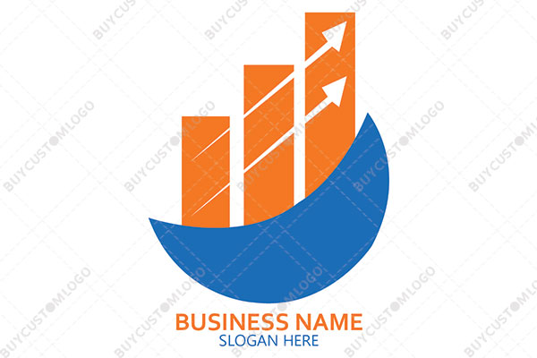 LOGO DESIGN DESCRIPTION Custom logo created using the emblems of ascending bars integrated with an upwards trending arrow to represent growth placed in a crescent moon basket to symbolize safety and security. The design will communicate youth and wisdom for your brand. Suitable for financial services, investment firms, real estate as well as other businesses.