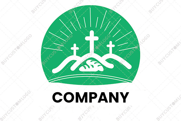 LOGO DESIGN DESCRIPTION Custom logo created combining the emblems of a cross representing the church, the rays representing enlightenment achieved through the teachings of these institutions, hills depict the height achieved as a result of learning these principles whereas the loaves of bread symbolize the last supper.